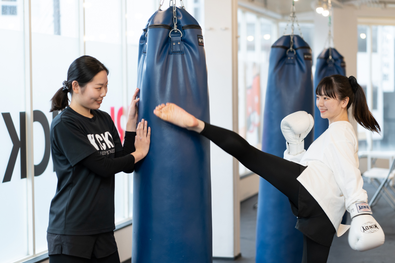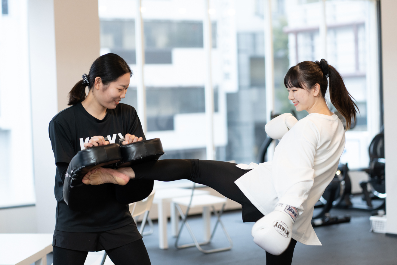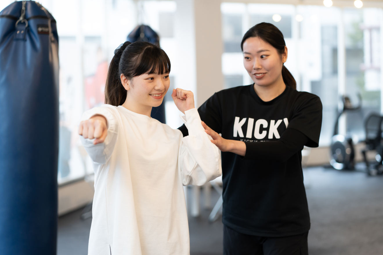 経験のない方でも、トレーナーがパンチとキックの基礎を